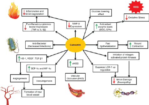 Curcumin, the active compound in turmeric, is a potent anti-inflammatory and antioxidant that: