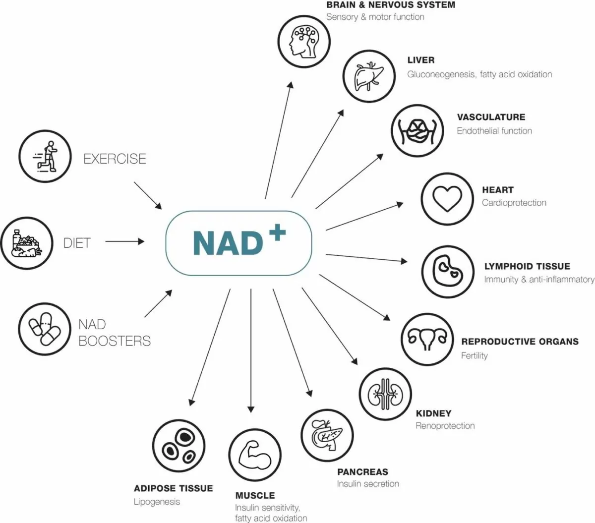 With age, NAD⁺ levels decline—up to 50% by middle age—contributing to fatigue, metabolic disorders, neurodegeneration, and accelerated aging.